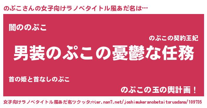 | 男性向けラノベタイトル風あだ名 | 『うちののぷこが世界を掌握している!』 |
