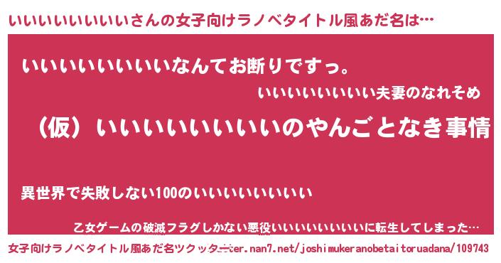 | 男性向けラノベタイトル風あだ名 | 『いいいいいいいいの憂鬱』 |
