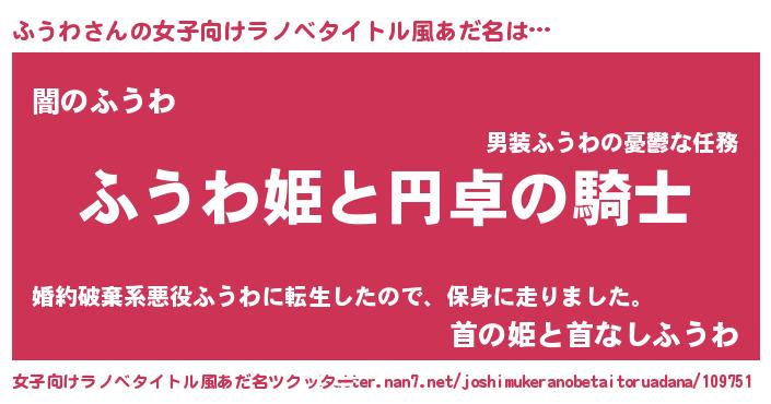 | 胡散臭い通販商品みたいなあだ名 | 『モテモテ間違いなし霊験あらたかなお札…その名も「ふうわ」』 |