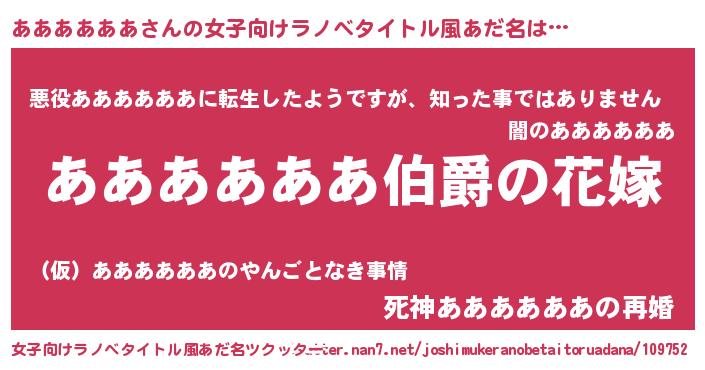 | 男性向けラノベタイトル風あだ名 | 『やはりああああああの青春ラブコメはまちがっている 』 |