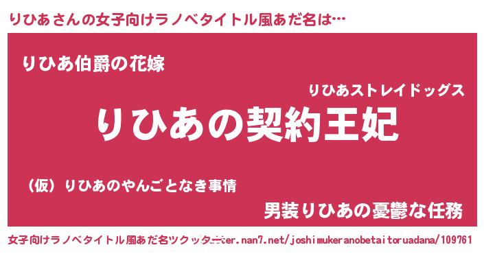 | ヒーロー風カッコイイあだ名 | 『ネオリヒア』『ウルトラりひあマン』 |
