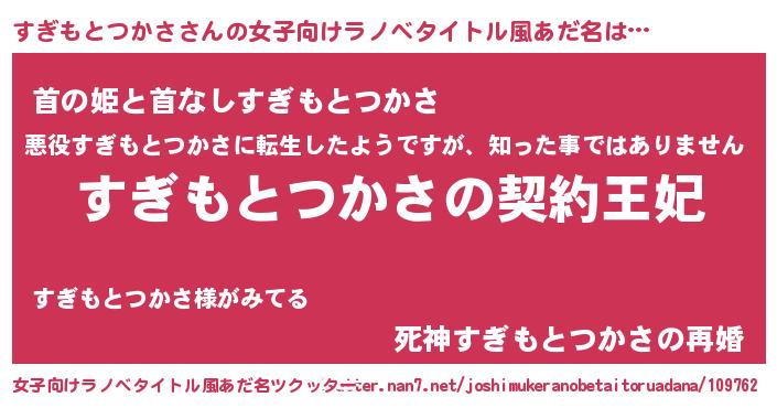 | 男性向けラノベタイトル風あだ名 | 『すぎもとつかさという概念が存在しない退屈な世界 』 |