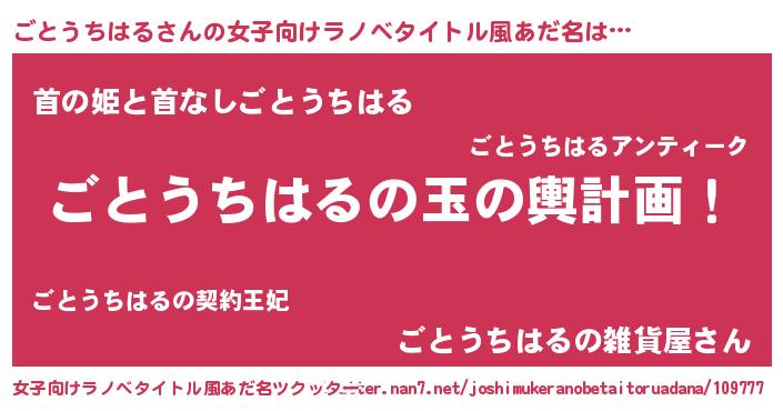 | 肩書あだ名 | 『ごとうちはる少将』『ごとうちはる総統』 |