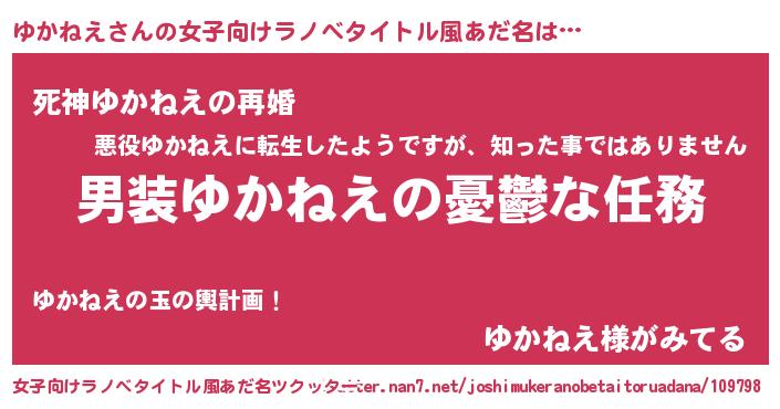 | 男性向けラノベタイトル風あだ名 | 『うちのゆかねえが世界を掌握している!』 |
