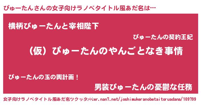 | 男性向けラノベタイトル風あだ名 | 『ぴゅーたんの憂鬱』 |