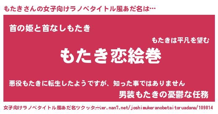 | ヒーロー風カッコイイあだ名 | 『愛の使者もたき』『黄金騎士モタ』 |