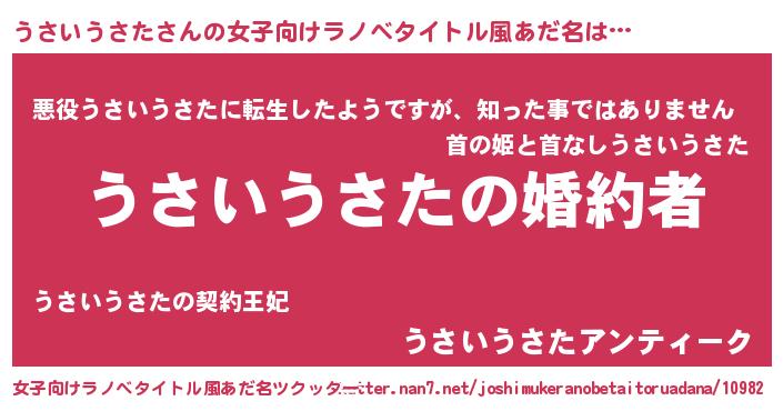 | 胡散臭い通販商品みたいなあだ名 | 『運命の人と巡り会える高級そうな皿…その名も「うさいうさた」』 |