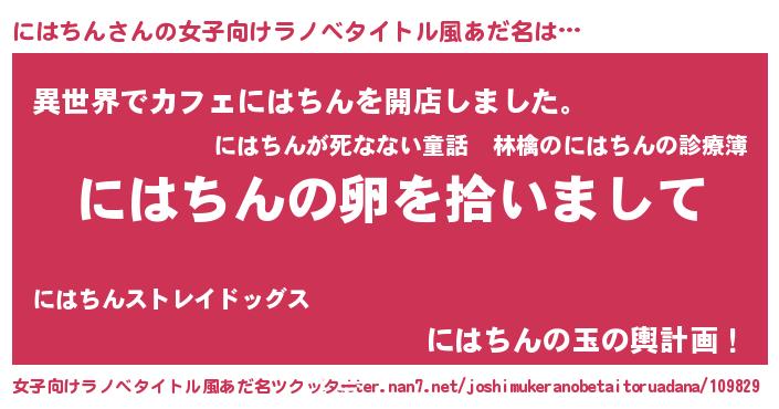 | 胡散臭い通販商品みたいなあだ名 | 『伝統あるサプリメント…その名も「にはちん」』 |