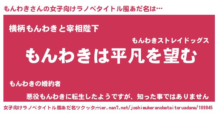 | 胡散臭い通販商品みたいなあだ名 | 『信頼と実績のペンダント…その名も「もんわき」』 |