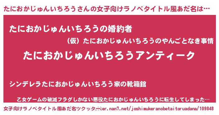 | 男性向けラノベタイトル風あだ名 | 『魔法科高校のたにおかじゅんいちろう』 |