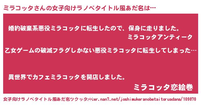 ミラコッタさんの女子向けラノベタイトル風あだ名