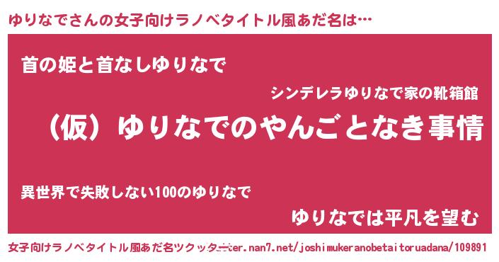| 恥ずかしいあだ名 | 『プリティーゆりなで』『ユリリンリン』 |