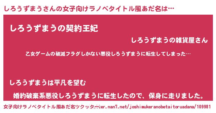 | 男性向けラノベタイトル風あだ名 | 『魔弾の王としろうずまう』 |