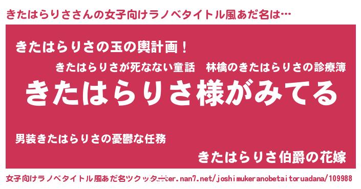 | 意味不明あだ名 | 『とにかく怪しいきたはらりさ』 |