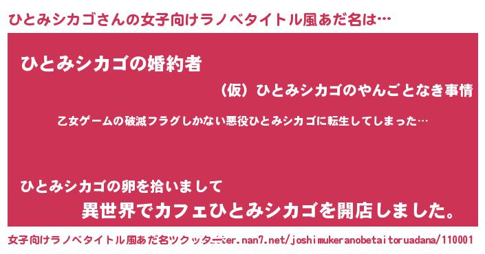 | 男性向けラノベタイトル風あだ名 | 『この素晴らしい世界にひとみシカゴを!』 |