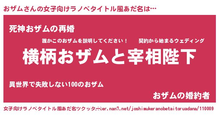 | 男性向けラノベタイトル風あだ名 | 『おザムに滅ぼされるだけの簡単なお仕事です』 |