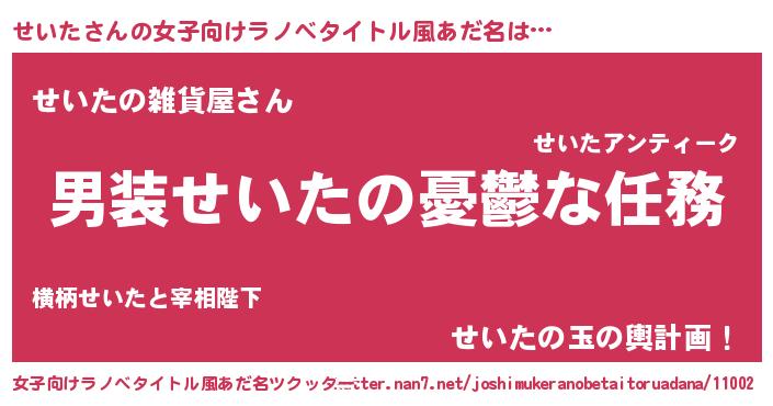 | 胡散臭い通販商品みたいなあだ名 | 『運命の人と巡り会える高級そうな壺…その名も「せいた」』 |