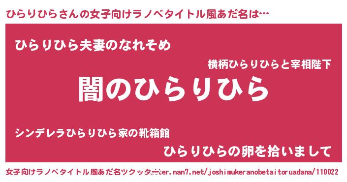 | 男性向けラノベタイトル風あだ名 | 『Re:ひらりひらから始める異世界生活』 |