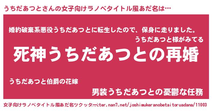 | 男性向けラノベタイトル風あだ名 | 『ノーゲーム・ノーウチダアツト』 |