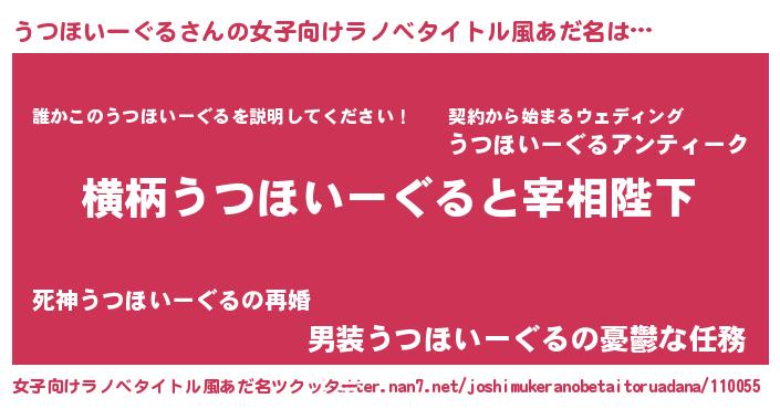 | 胡散臭い通販商品みたいなあだ名 | 『億万長者になれるブレスレット…その名も「うつほいーぐる」』 |
