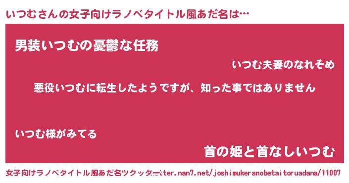 | 男性向けラノベタイトル風あだ名 | 『この素晴らしい世界にいつむを!』 |