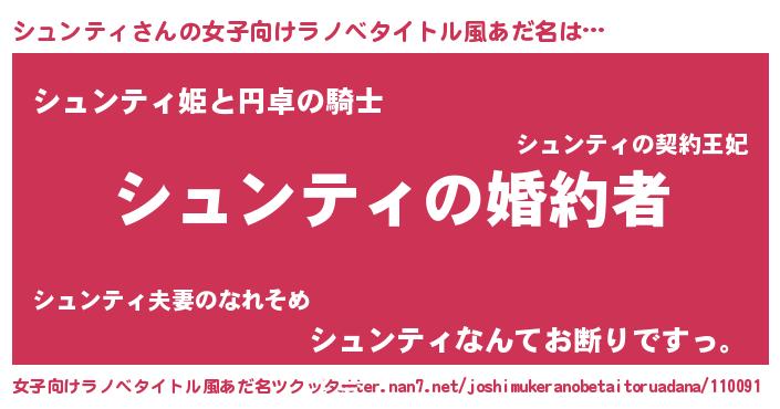 | 男性向けラノベタイトル風あだ名 | 『うちの娘の為ならば、俺はもしかしたらシュンティも倒せるかもしれない。』 |