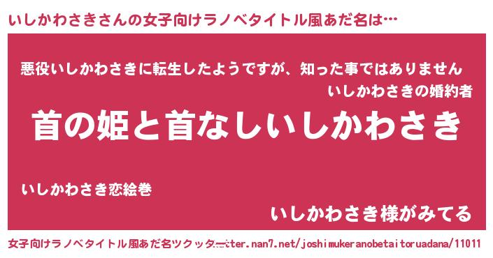 | 男性向けラノベタイトル風あだ名 | 『はたらくいしかわさきさま!』 |