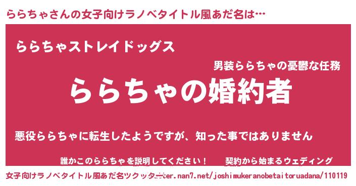 | 胡散臭い通販商品みたいなあだ名 | 『運命の人と巡り会える高級そうな壺…その名も「ららちゃ」』 |