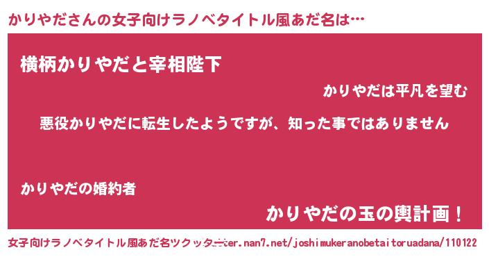 | 男性向けラノベタイトル風あだ名 | 『この素晴らしい世界にかりやだを!』 |
