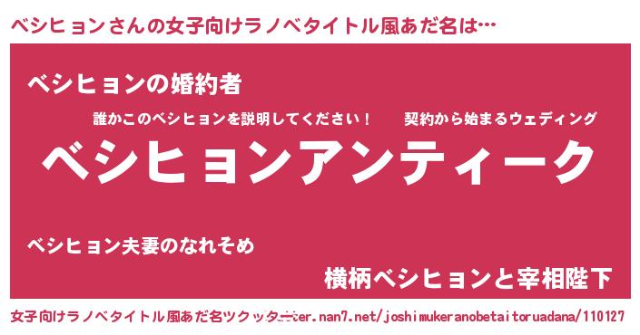 | 男性向けラノベタイトル風あだ名 | 『魔法科高校のべシヒョン』 |