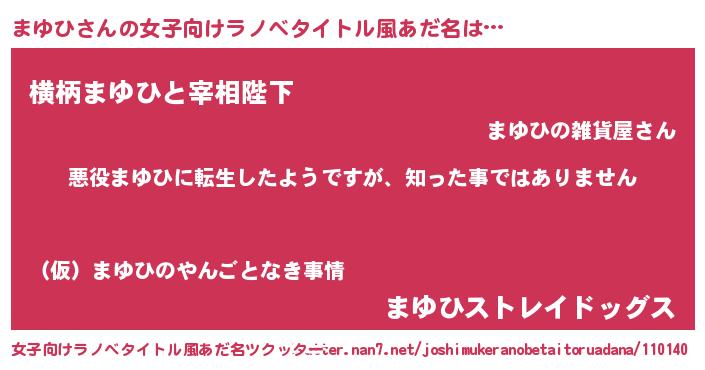 | 意味不明あだ名 | 『住所不定無職まゆひ(6歳)』『自称まゆひ』 |