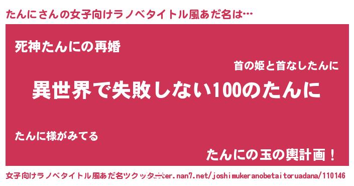 | 胡散臭い通販商品みたいなあだ名 | 『絶対に幸福をもたらす招き猫…その名も「たんに」』 |