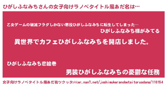 | 男性向けラノベタイトル風あだ名 | 『誰もが恐れるあのひがしふなみちが、ぼくの専属メイドになるようです。』 |