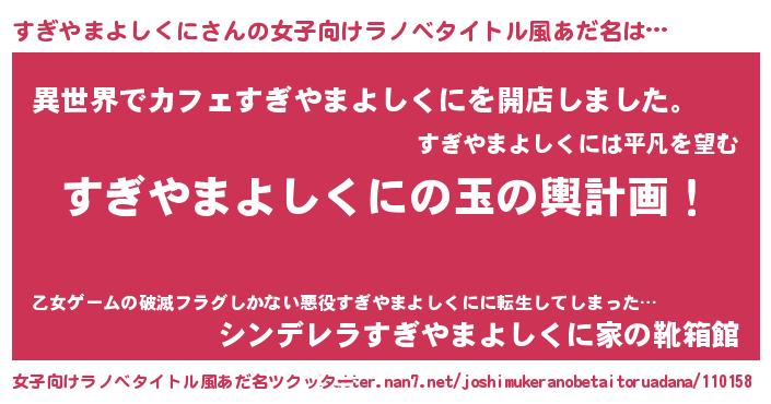 | 胡散臭い通販商品みたいなあだ名 | 『前代未聞の健康食品…その名も「すぎやまよしくに」』 |