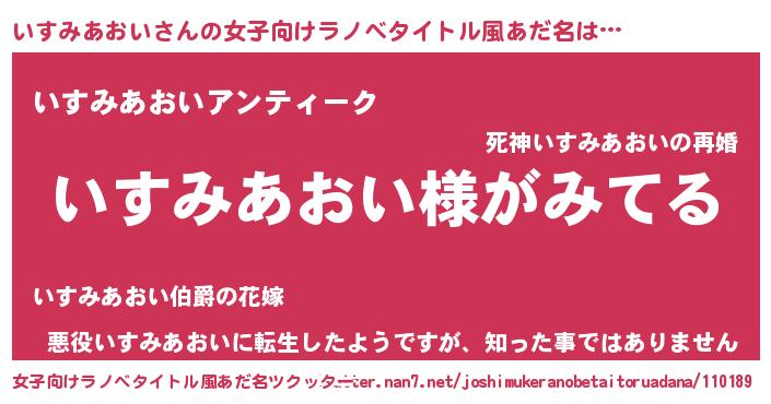 | 男性向けラノベタイトル風あだ名 | 『いすみあおいの嫁は女の子じゃないと思った?』 |