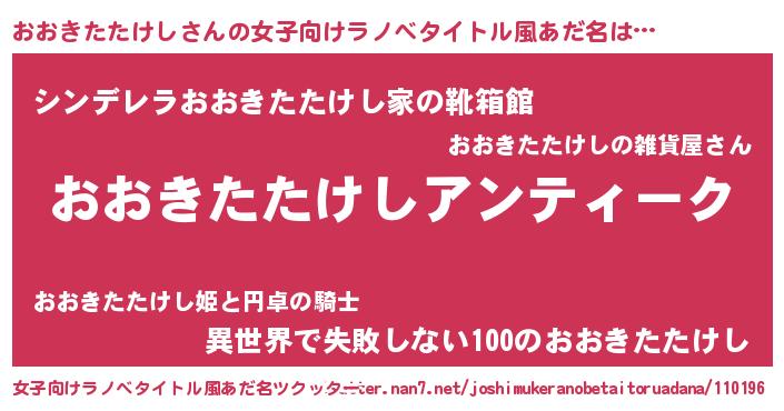 | 意味不明あだ名 | 『自称おおきたたけし』 |