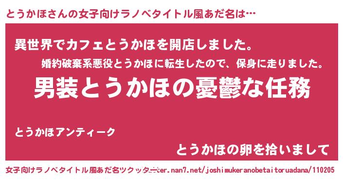 | 意味不明あだ名 | 『永久保存とうかほ』『自称とうかほ』 |