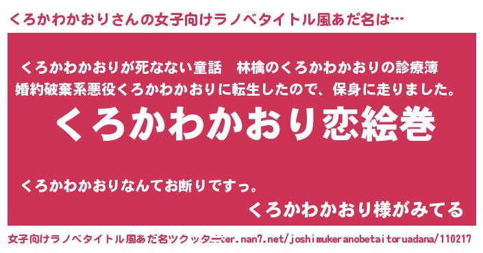 | 胡散臭い通販商品みたいなあだ名 | 『お金では代えられないイリジウム磁石…その名も「くろかわかおり」』 |