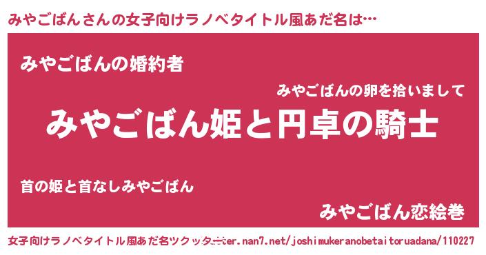 | 胡散臭い通販商品みたいなあだ名 | 『モテモテ間違いなし水晶球…その名も「みやごばん」』 |