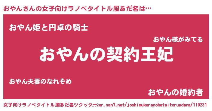 | 胡散臭い通販商品みたいなあだ名 | 『来世でも幸せになれる水素水…その名も「おやん」』 |