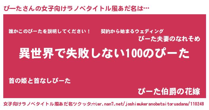 | 男性向けラノベタイトル風あだ名 | 『ぴーたという概念が存在しない退屈な世界 』 |