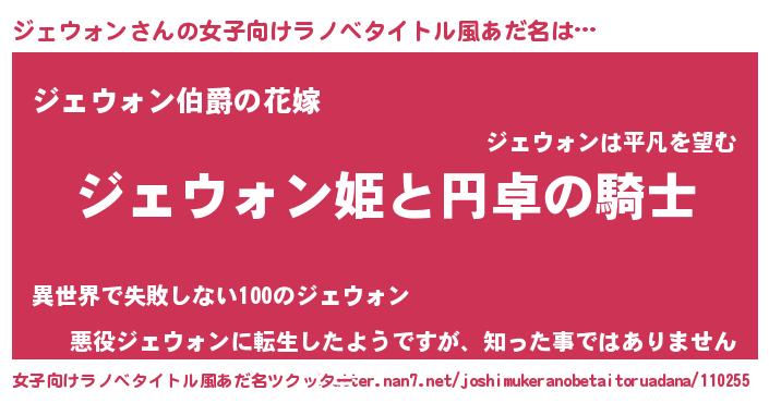 | 男性向けラノベタイトル風あだ名 | 『ジェウォンアートオンライン』 |