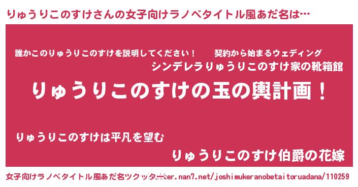 | 男性向けラノベタイトル風あだ名 | 『転生したらりゅうりこのすけだった件』 |
