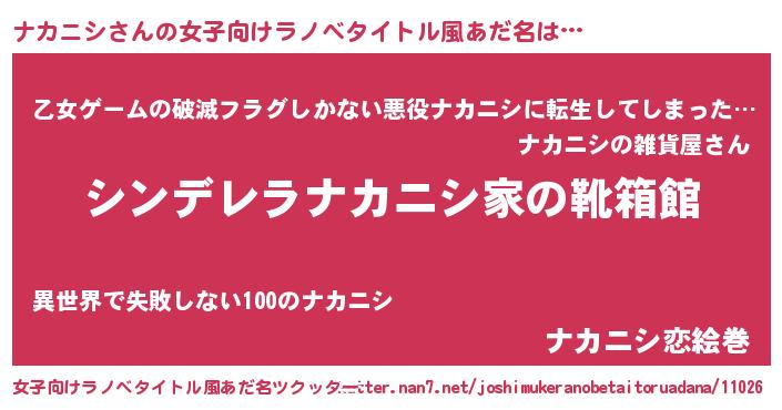 | 男性向けラノベタイトル風あだ名 | 『冴えないナカニシの育てかた』 |