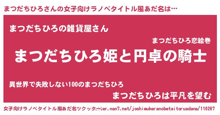 | 男性向けラノベタイトル風あだ名 | 『まつだちひろの憂鬱』 |