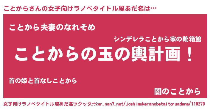 | 意味不明あだ名 | 『なめこ科ことから属』『自称ことから』 |