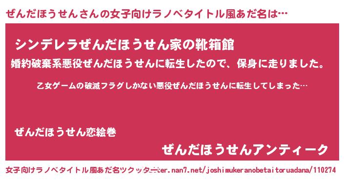 | 意味不明あだ名 | 『住所不定無職ぜんだほうせん(98歳)』 |