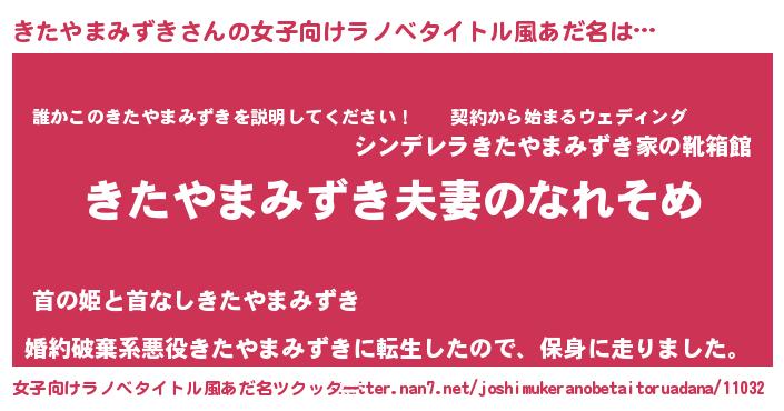 | 男性向けラノベタイトル風あだ名 | 『おまえをオタクにしてやるから、俺をきたやまみずきにしてくれ! 』 |