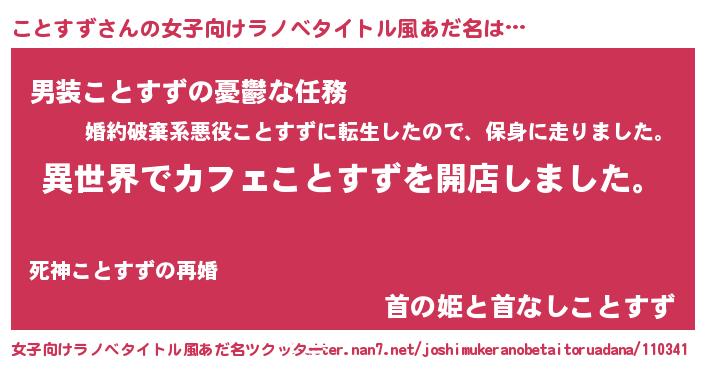 | 胡散臭い通販商品みたいなあだ名 | 『前代未聞の健康食品…その名も「ことすず」』 |