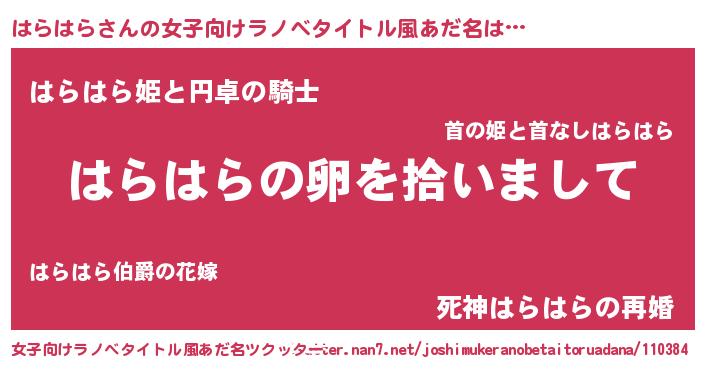| 萌えアニメ | 主人公(はらはら)のあだ名『 はらぴょん』 |